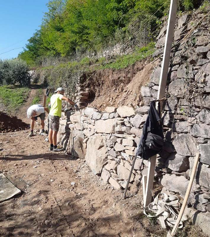 - Ripristino dei terrazzamenti franati, un tempo destinati alla viticoltura.